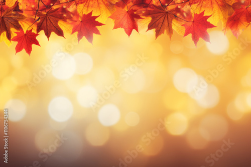 Autumn season with red and yellow maple leaves with soft focus light and bokeh background