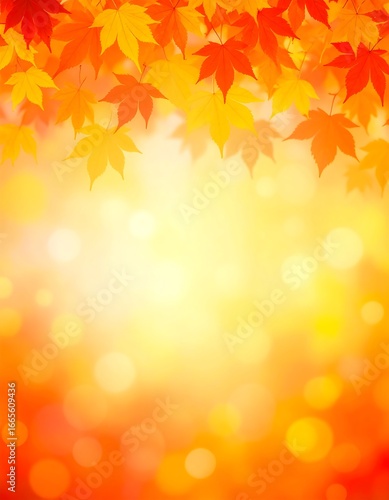 Autumnal foliage frames a soft, glowing, bokeh background