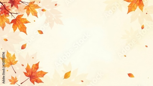 Autumnal Leaves Cascading on a Soft Beige Background, Perfect for Seasonal Designs and Fall-Themed Projects