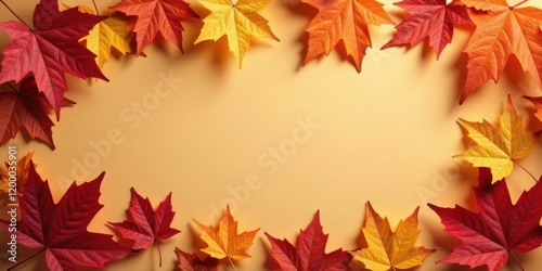 Autumnal Maple Leaves Frame on Warm Background, Perfect for Seasonal Designs and Projects