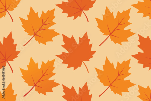 Autumnal Maple Leaves Pattern Vibrant Orange Foliage on Beige Background Depicting Fall