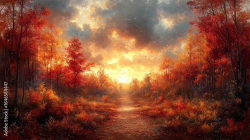 Autumnal Path in a Vivid Forest