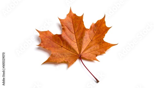Autumn's embrace: A vibrant maple leaf isolated against a stark white backdrop
