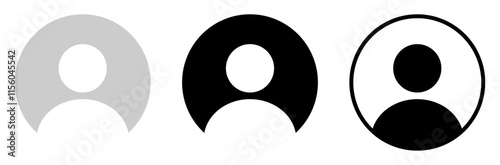 Avatar account vector icon set isolated. Default social media profile photo sign symbol different style. User portrait icons set. Linear, silhouette and flat design. Vector illustration.