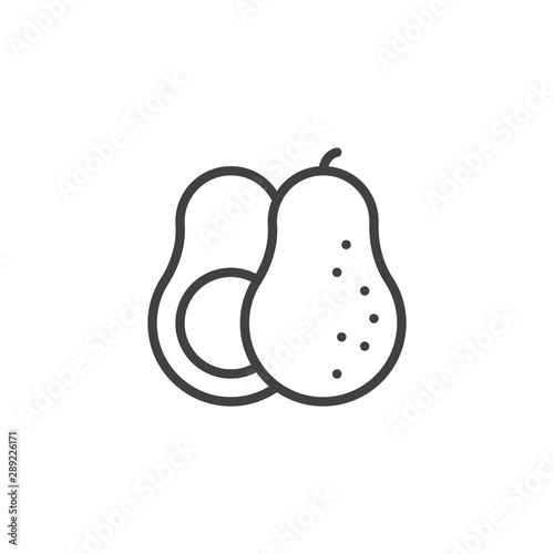 Avocado whole and slice line icon. linear style sign for mobile concept and web design. Fresh fruit avocado outline vector icon. Symbol, logo illustration. Vector graphics