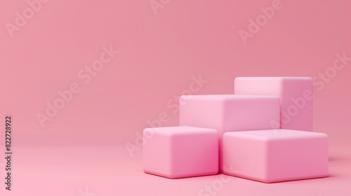 Awarding podium made of three 3d pastel square shapes of different sized against blank pink background for copy space : Generative AI