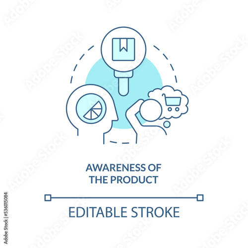 Awareness of product turquoise concept icon. Sensory system in customer behaviour abstract idea thin line illustration. Isolated outline drawing. Editable stroke. Arial, Myriad Pro-Bold fonts used