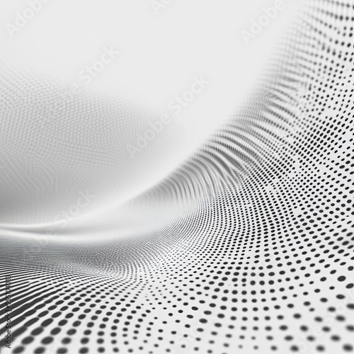 Awesome white and grey halftone background. Futuristic motion dots perspective backdrop.
