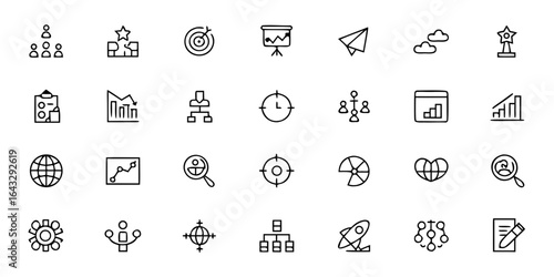 B2B Strategy Outline Icon Set — Business Planning, Market Expansion, and Partnership Growth Vector Illustrations for Corporate, Consulting, and Startup Branding