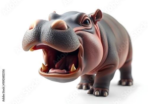 Baby pygmy hippopotamus open mouth, real baby pygmy hippopotamus, isolated on the white background,
