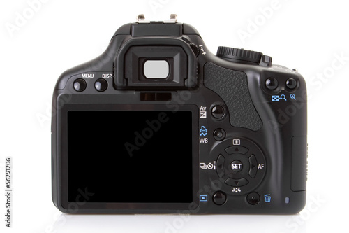 Back of a digital slr isolated on a white background..