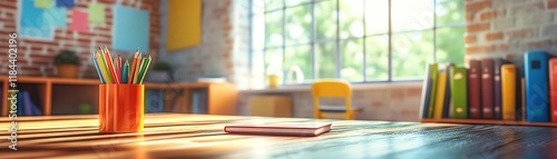 Back to school art background, vibrant classroom with books and educational tools, discovery education concept, creative learning environment, colorful and dynamic design