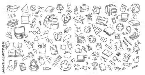 Back to school doodle elements. Vector illustration in line. Used for banner, poster, background, etc
