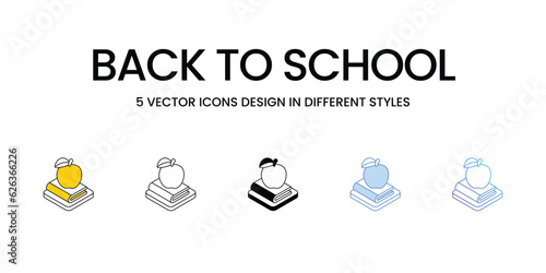 Back To School Icon Design in Five style with Editable Stroke. Line, Solid, Flat Line, Duo Tone Color, and Color Gradient Line. Suitable for Web Page, Mobile App, UI, UX and GUI design.