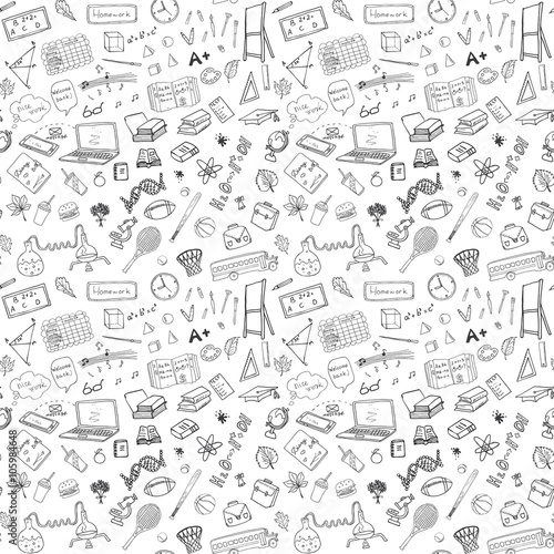 Back to School seamless pattern with Hand-Drawn Doodles. sketch element background Vector Illustration