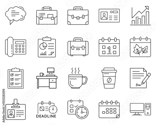 Back to Work Icon Set Featuring Business Tools and Office Symbols