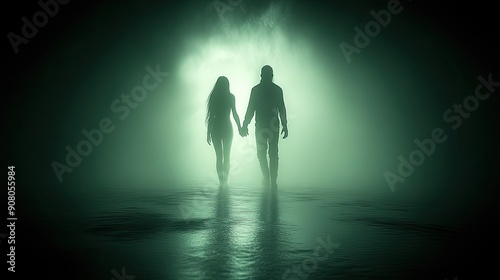 Back view of a couple holding hands