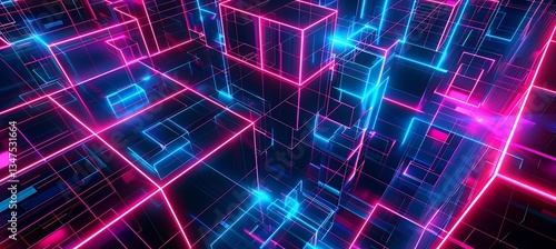 Backdrop Featuring Intersecting Squares with Neon Maroon and Aquamarine Accents – Empty Template for Web Banner, Birthday Wish, or New Year Wish