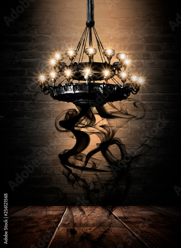 Background abstract, abstract background, smoke, smog. Night view dark room, room, corridor with a lot of light. Abstract light, spotlights, neon.
