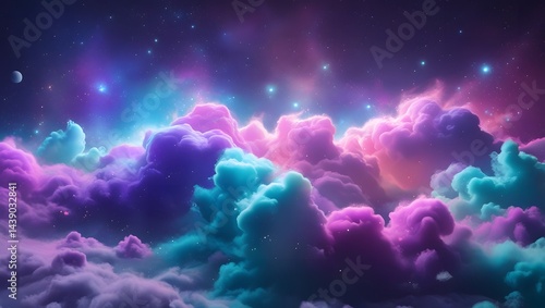 Background abstract of colorful cosmic dreamy clouds in a surreal sky, creating a fantasy aesthetic full of vibrant and ethereal beauty.