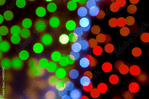 background blurred abstraction of colored lanterns and decorations. bokeh texture of street colored lights