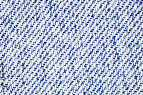 Background, denim fabric close-up, white and blue threads, uniform texture