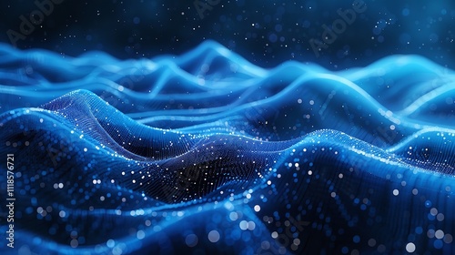 Background design with abstract waves of particles. Abstract wave moving dots flow particle.
