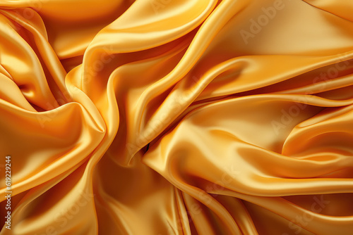 Background featuring undulating waves of shimmering golden silk. Generative Ai.