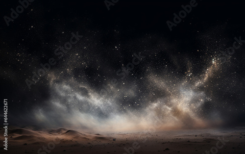 Background flying dust grains in a dark room with a dark dark background, Empty walls, particles lights, smoke, glow, rays