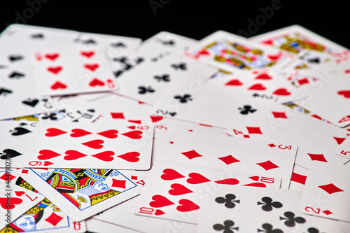 background made of playing cards top down view