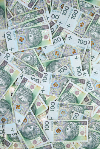 background made of polish 100 zloty banknotes