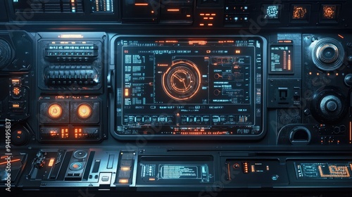 Background of a high-tech control panel with buttons, dials, and digital displays, representing advanced engineering systems