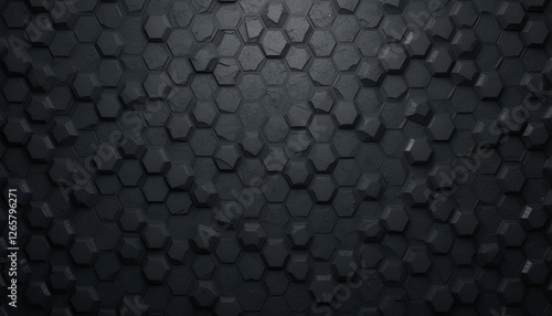 Background of abstract black 3d hexagon background design a dark honeycomb grid pattern. Abstract octagons dark 3d modern background. Abstract Black geometric background