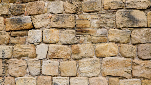 Background of an old sandstone wall with different sized and shaped blocks, perfect for photo textures