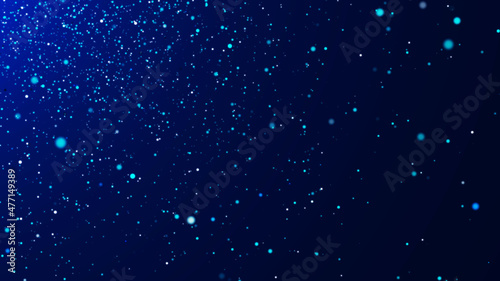 Background of falling magic dust particles. Abstract christmas concept. Energy flow of blue particles. 3D rendering.