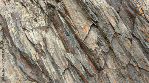Background of layers and cracks in rock. Natural stone background or stone texture.