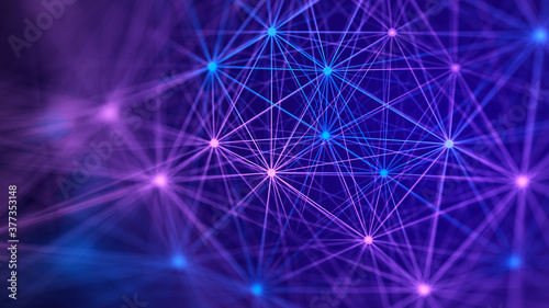 Background of networking concept. Abstract neural network. Futuristic cyber technology background. Mesh of data transfer. 3d rendering.