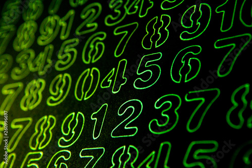 Background of numbers. from zero to nine. Numbers texture. Currency symbols. Numerology. Mathematical equations and formulas