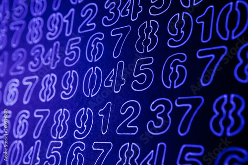 Background of numbers. from zero to nine. Numbers texture. Currency symbols. Numerology. Mathematical equations and formulas