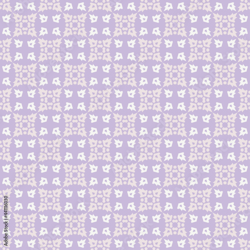 Background pattern of decorative ornament on purple background, wallpaper. Seamless pattern, texture