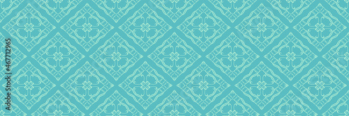 Background pattern with decorative geometric floral ornament on a blue background for your design. Seamless background for wallpaper, textures. Vector illustration.