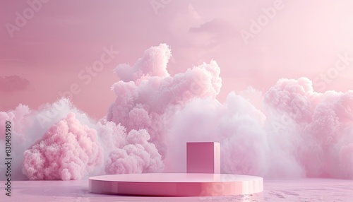 Background podium pastel color 3D product sky platform display cloud pastel scene render stand.