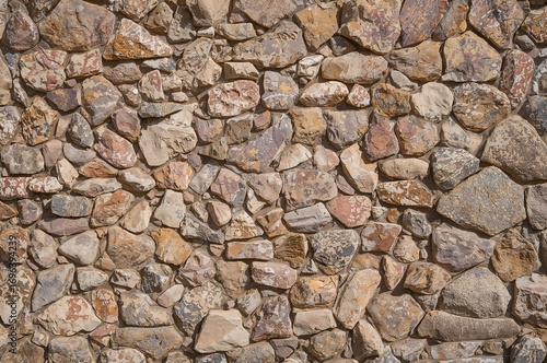 Background texture created by colorful stones embedded in a wall.