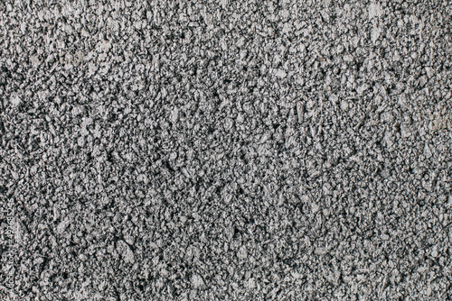 ฺBackground texture of rough asphalt floor. Close-up horizontal grey granite gravel floor.