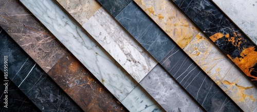 Background wallpaper mixed of several natural stones or marble in different geometries. Copy space image. Place for adding text and design