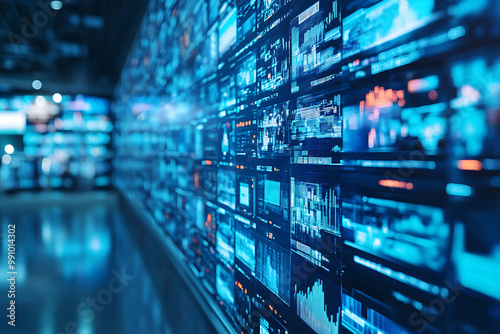 background with a newsroom displaying breaking news headlines on a large digital screen