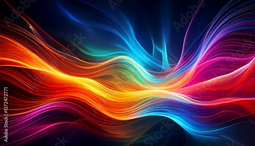 Background with abstract colorful neon waves.Colorful or rainbow background.Generative AI