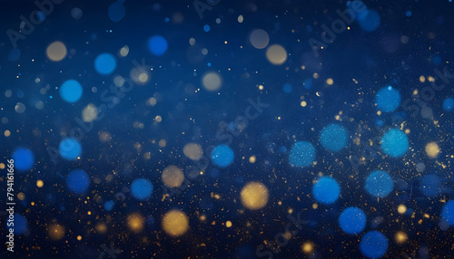 Background with Dark blue and gold particle, Christmas background with gold stars and sparkling, Christmas Golden light shine particles bokeh on navy blue background. Generative AI