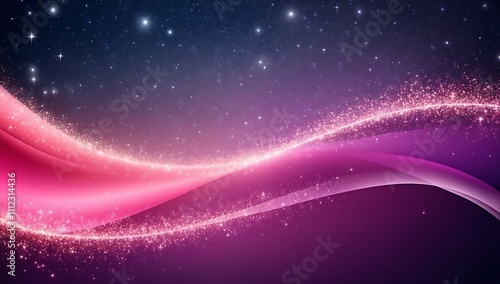 Background with pink and purple gradient waves, glowing particles, sparkling stars, a starry sky and light spots.