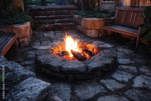 Backyard fire pit creating warmth and ambiance in a cozy outdoor space during the evening hours